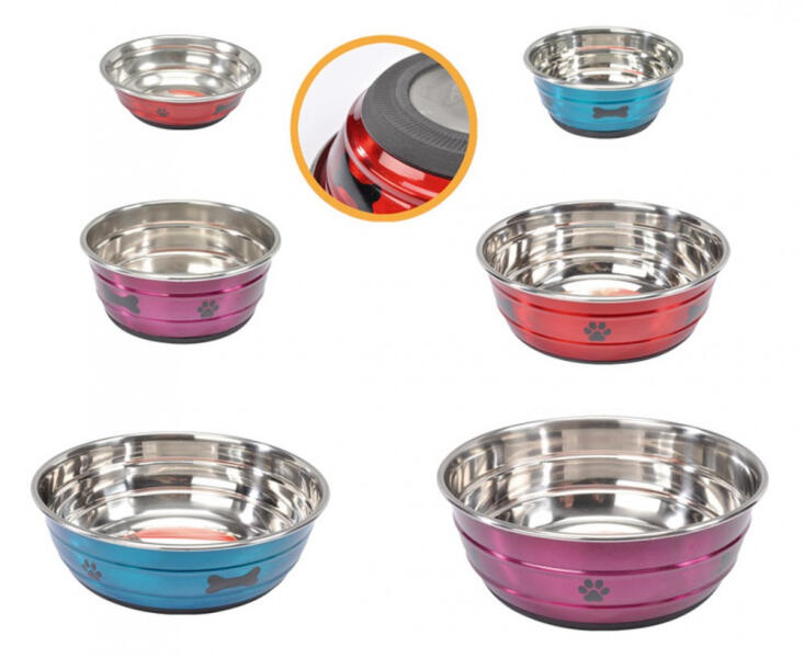 Linea New Selecta Rozsdamentes színes etető/itató tálak csúszásgátló, zajcsökkentő gumival