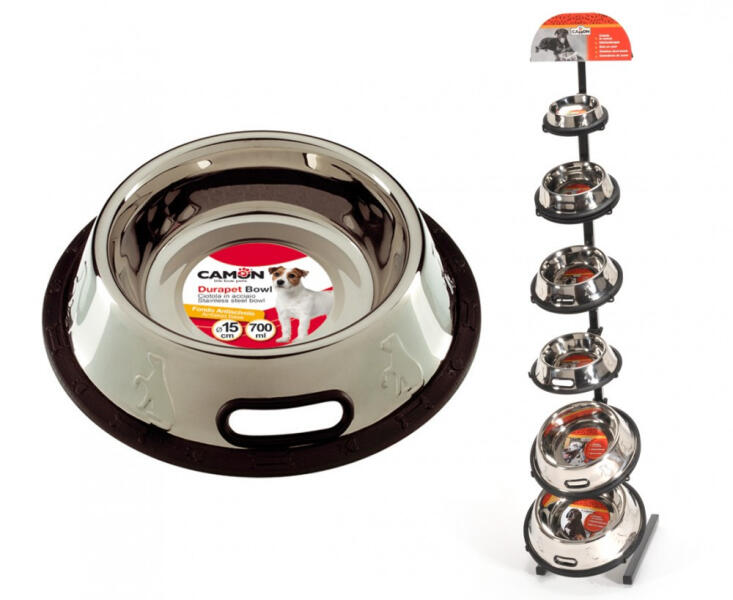 Széles alsó peremes rozsdamentes tál, csúszásgátló gumival