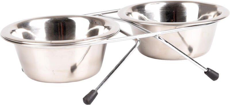 Jellemzők: - Anyaga: Rozsdamentes acél. - Csúszásgátlós. - Mosogatógépben tisztítható. - Duo vacsora: 2 eltávolítható etető és itató tál egy állványon.