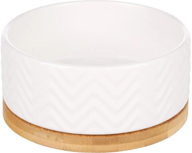 Jellemzők: - Anyag: mázas kerámia tál bambusztartóban - Csúszásmentes - A kivehető tál mosogatógépben mosható, de a tartó nem.