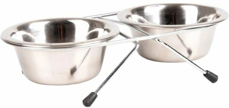 Duo etető/itató fémtál kutyák számára. Jellemzők: < p>- Anyaga: Rozsdamentes acél. - Csúszásgátlós. - Mosogatógépben tisztítható. - Duo vacsora: 2 eltávolítható etető és itató tál egy állványon.