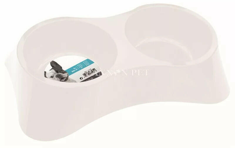 Klasszikus műanyag dupla etetőtál kutyáknak fehér színben! Űrtartalom: 2 x 800 ml