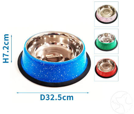 Márványszemcsés rozsdamentes acél kutyatál, csúszásgátló gumírozott aljjal.