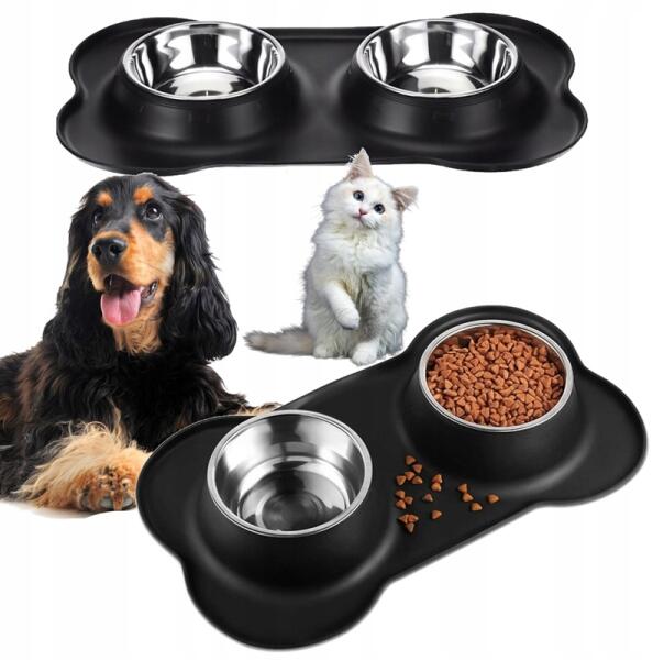 Reverse Dupla Tál Szett Kutyának Macskának Ételhez Vízhez Itató Alátét 280ml (Zestawkosc2Mblack)ALLEGRO