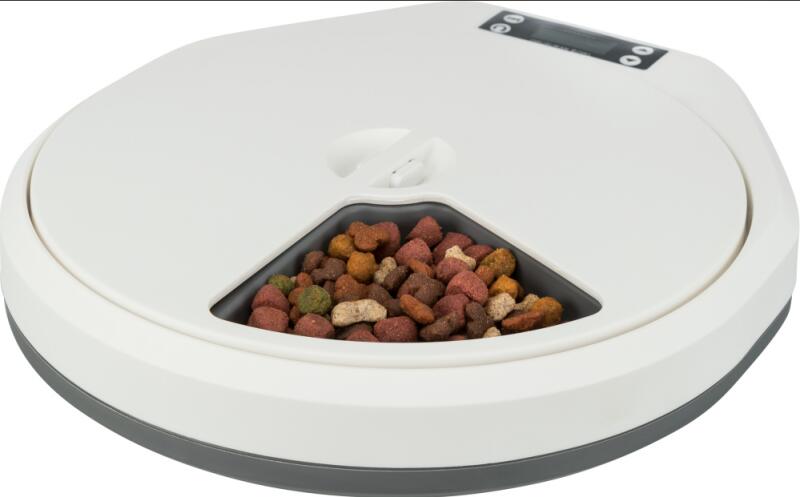 Trixie automatikus adagoló TX4+1 5x0.24ml - Termékleírás A TRIXIE TX4+1 automata kutyaeledel-adagolójával a megfelelő időben etetheti kutyáját. Ez a készülék lehetővé teszi azt is, hogy meghatározhassa kedvence táplálékadagolásának mennyiségét és gyakoriságát, amikor Ön nincs otthon. Az automata adagoló lehetővé teszi, hogy kedvence meghatározott időben hozzáférjen az ételhez. Az etetési idő akár napi 4 alkalommal is beprogramozható. Ez az adagoló nedves eledelhez is alkalmas. Elemmel működő adagoló (4 × AA, az elemeket nem tartalmazza). Trixie automatikus adagoló TX4+1 5x0.24ml - Műszaki adatok