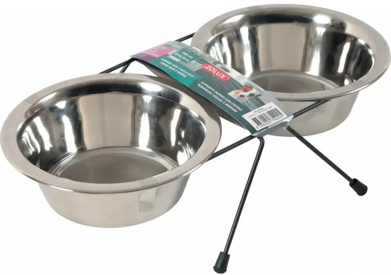 ZOLUX Zolux 2 db 700 ml-es Inox kutyatál + fém állvány